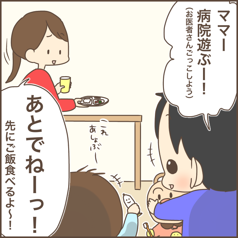 (顔を洗っている時とか、料理をしている時とか、兄弟でおもちゃの取り合いになった時とか…待ってねのオンパレードです^^;)