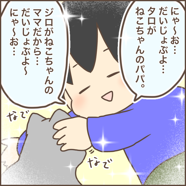 猫のぬいぐるみのママとパパになってあげると言うタロの優しさ…!涙