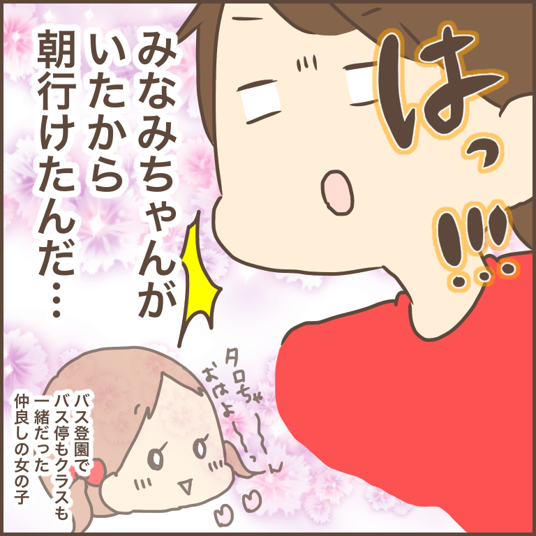 やっぱりみなみちゃんの存在は大きかったな〜と思います(>_<)幼稚園につく前から友達に会えるんですから不安も無くなりますよね。みなみちゃ〜ん!