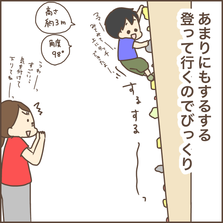 だれかに教えてもらったわけでもないのに、ちゃんとホールドを選んで上手に登れるものなんだな〜と感心しました。
