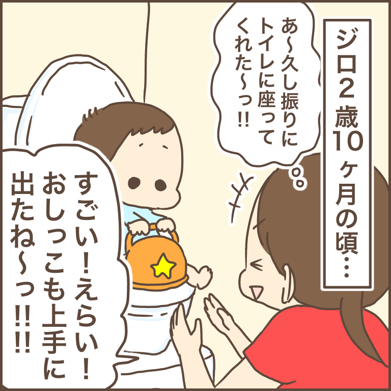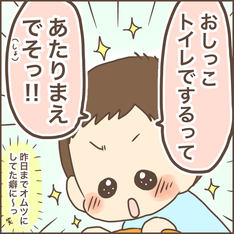 3歳1ヶ月現在、おしっこは完全にトイレでするようになりました。夜のおねしょも今のところありません!嬉しい!