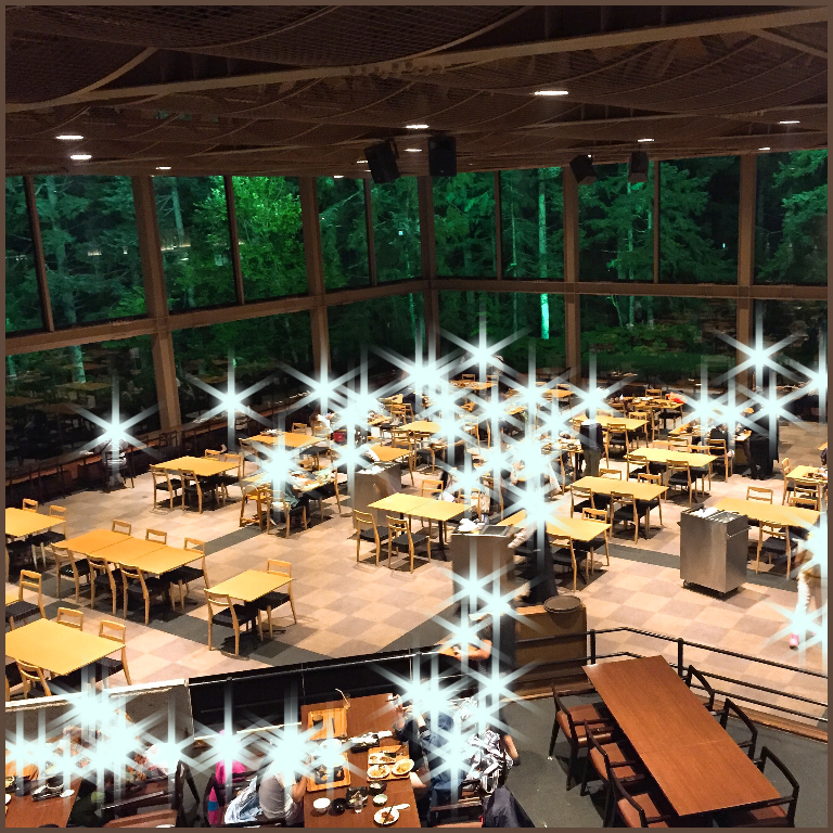 ガラス張りで外の木々がライトアップされているのが綺麗でした!