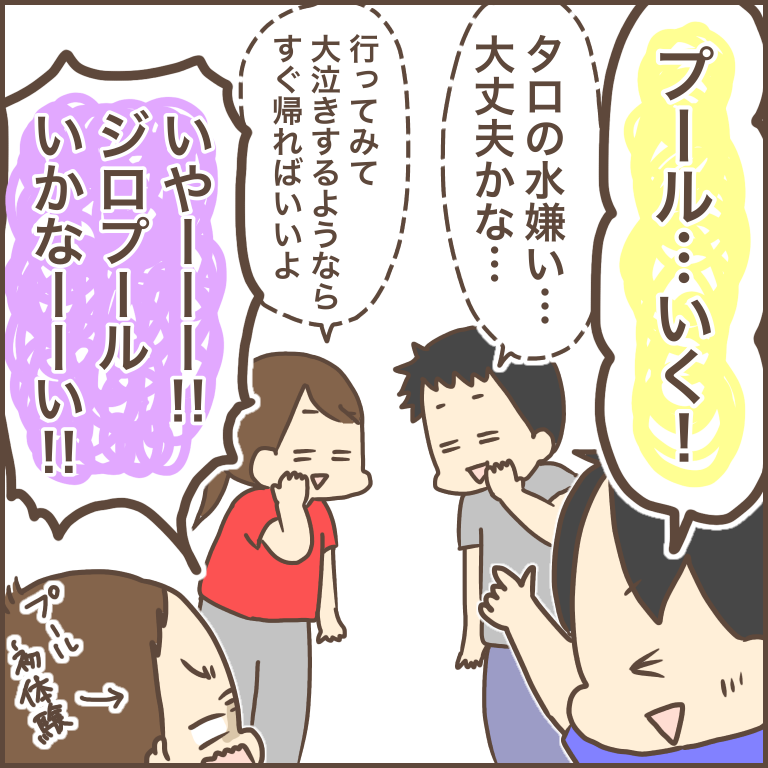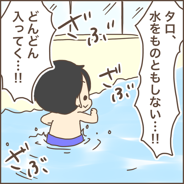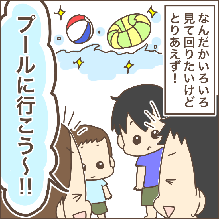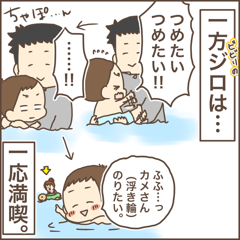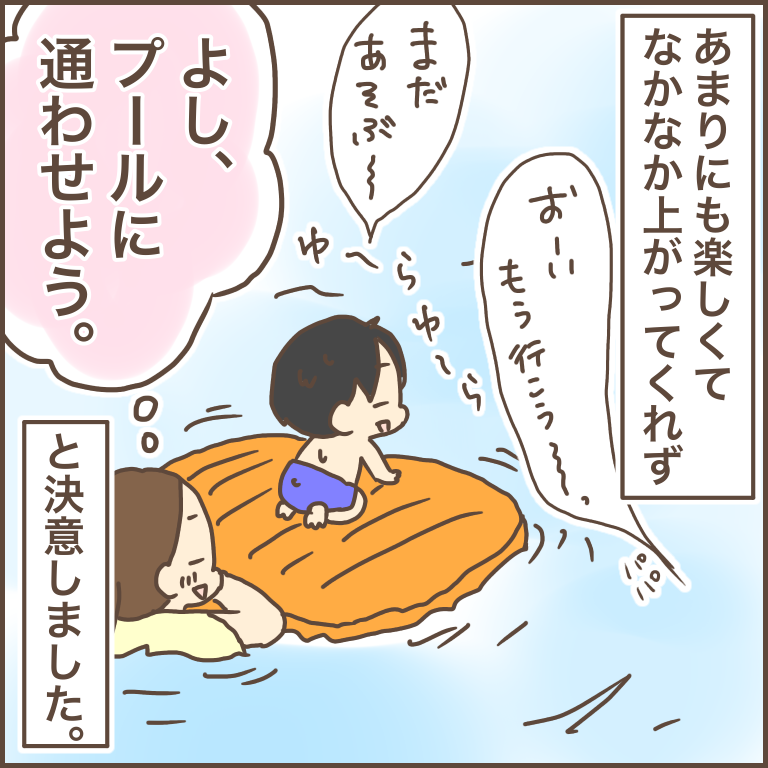 入ってしまえば楽しかったようで、カメ(だったかな…魚だったかな)の浮き輪に乗りたい!と言ったり、タロと一緒の浮き輪に入りたいと言ったり、楽しそうにしていました。