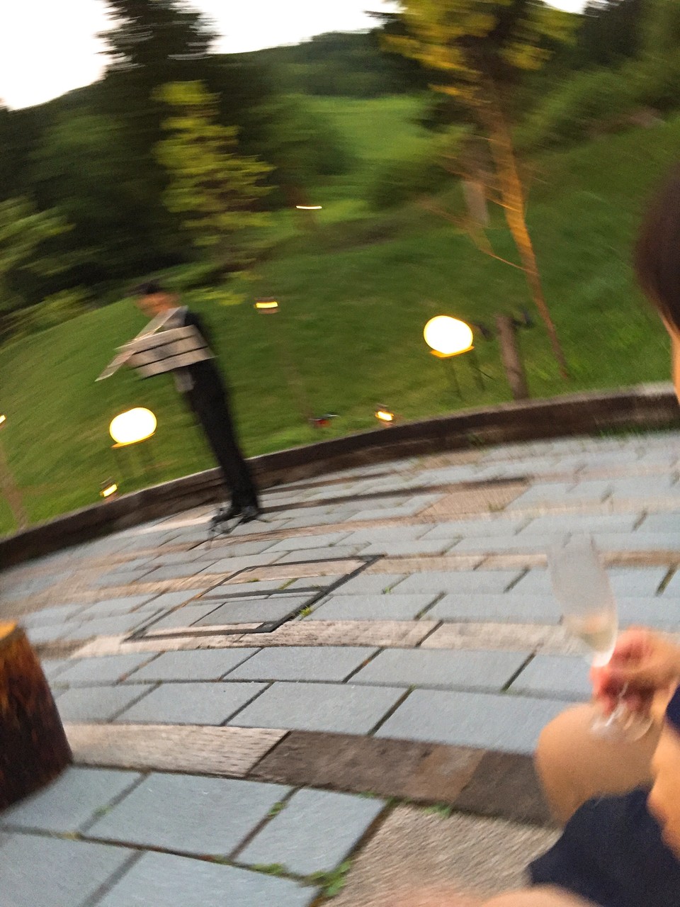 プールを上がって夕方、リゾナーレトマムの中庭でウェルカムドリンクをお配りしますということで行ってみました。