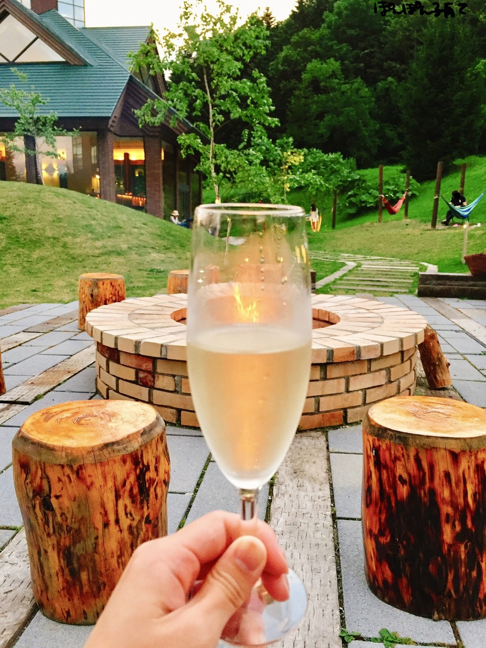 真夏の北海道で日中は30度くらいまで上がったのですが、山奥(森?)ということもあって夕方は肌寒く、全員上着を着ながらくつろぎました。