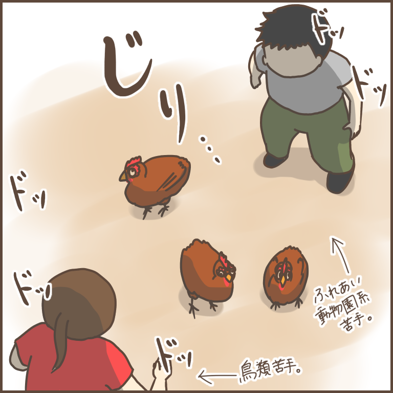 ひとしきりニワトリと駆け回ってみた(笑)のですが全然捕まらない。