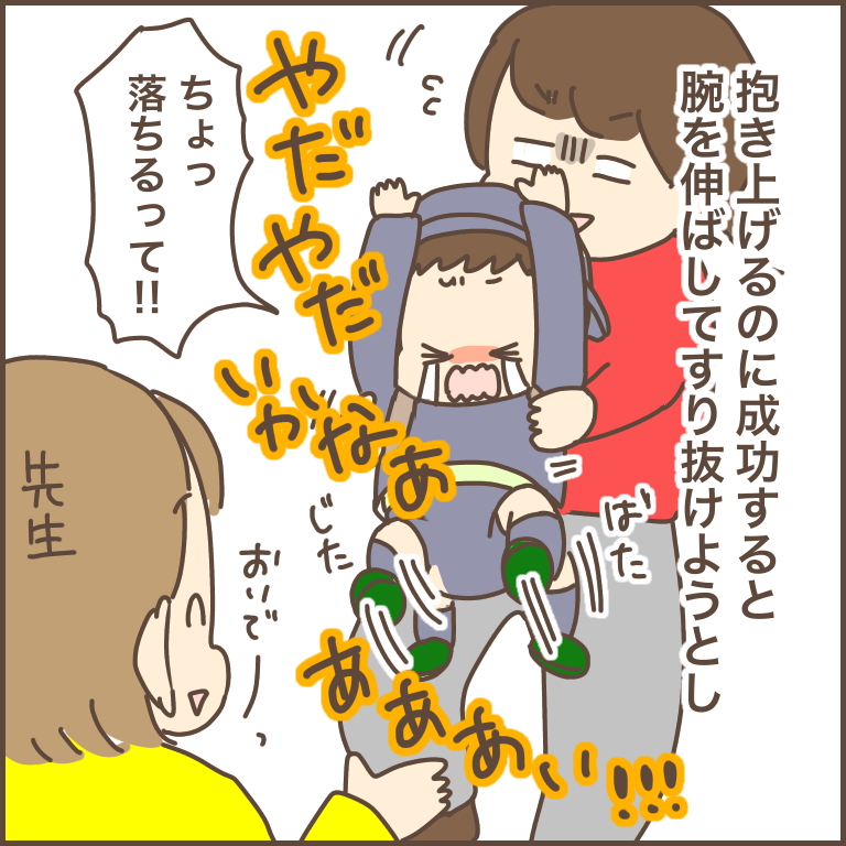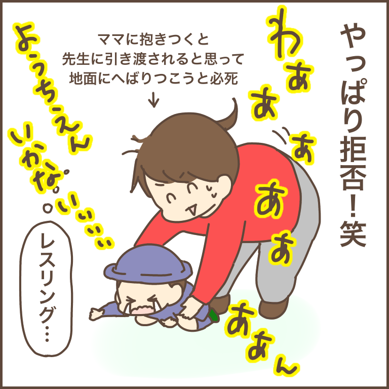 そして帰り際に他の子のママが迎えに来たのを見て、帰りたくなって泣くんだろうな〜なんてところまで想像しながら、お迎えの時間を待ちました。