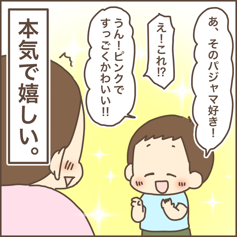 紺色のパジャマばかりなので明るい色を着るとすごく褒めてくれる。笑