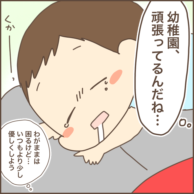 幼稚園で頑張ってるから、自分を解放できる家では(ママには)甘えたりわがままを言ったりしてしまうのかな