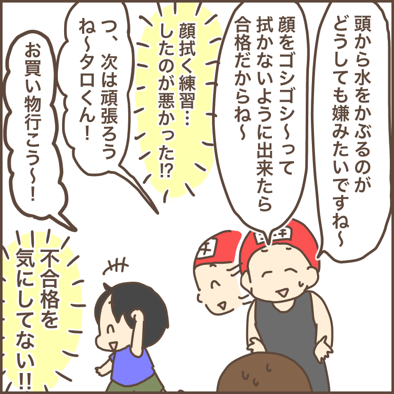 スイミングスクールの進級テスト、それも超初級の簡単なテストで不合格だったタロ。