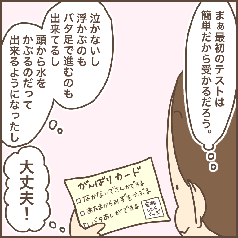 色んな子供たちがいるから、性格も上達スピードも様々です。プールに行くことが楽しかったら十分だと思いますよ!