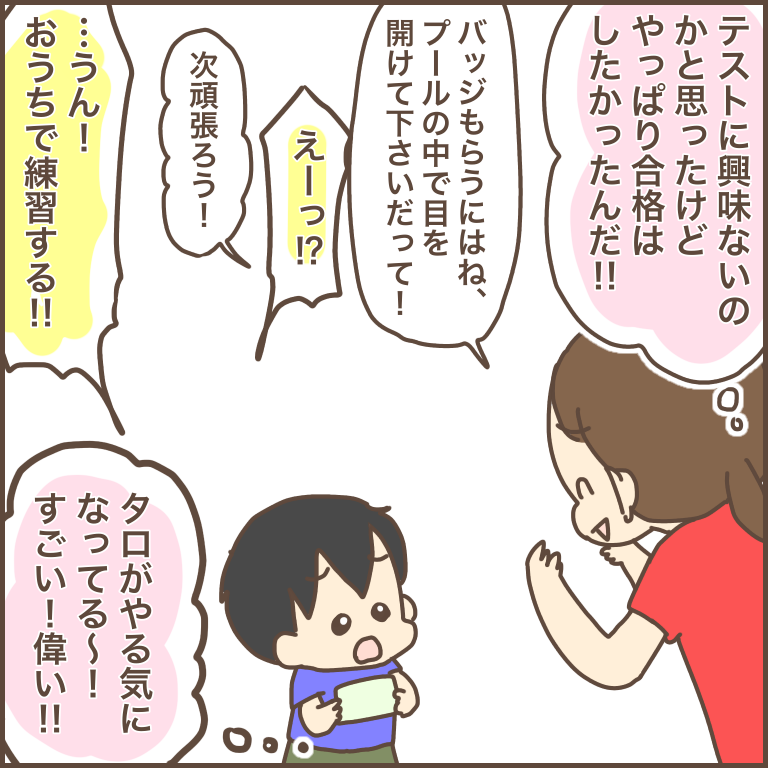 「水中で目を開ける」はできなかったけど、他のテスト項目は全部できていたので