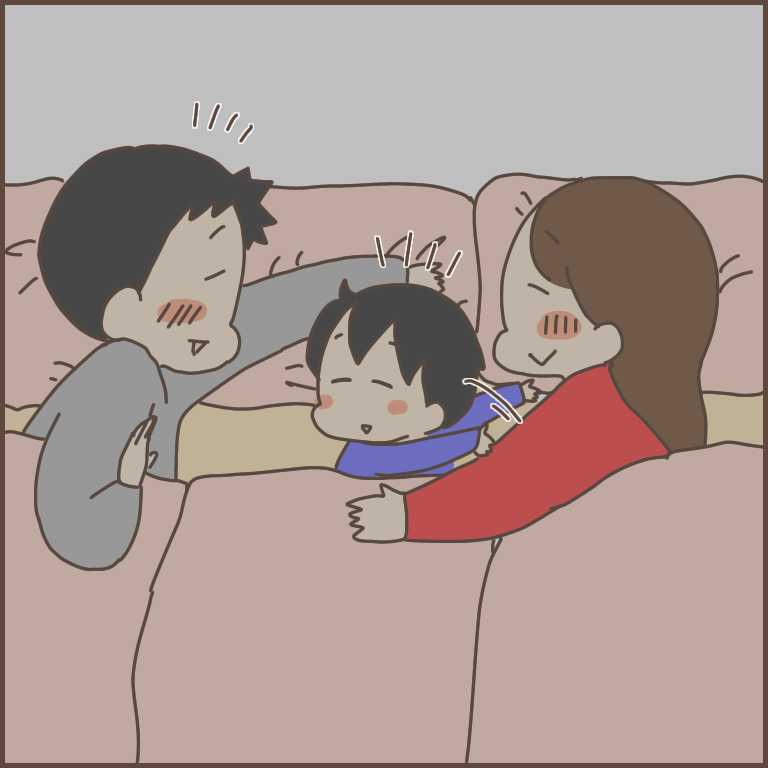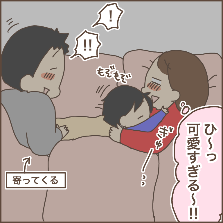 「パパとママが2人とも僕を見てる!挟まれてて嬉しい!!」
