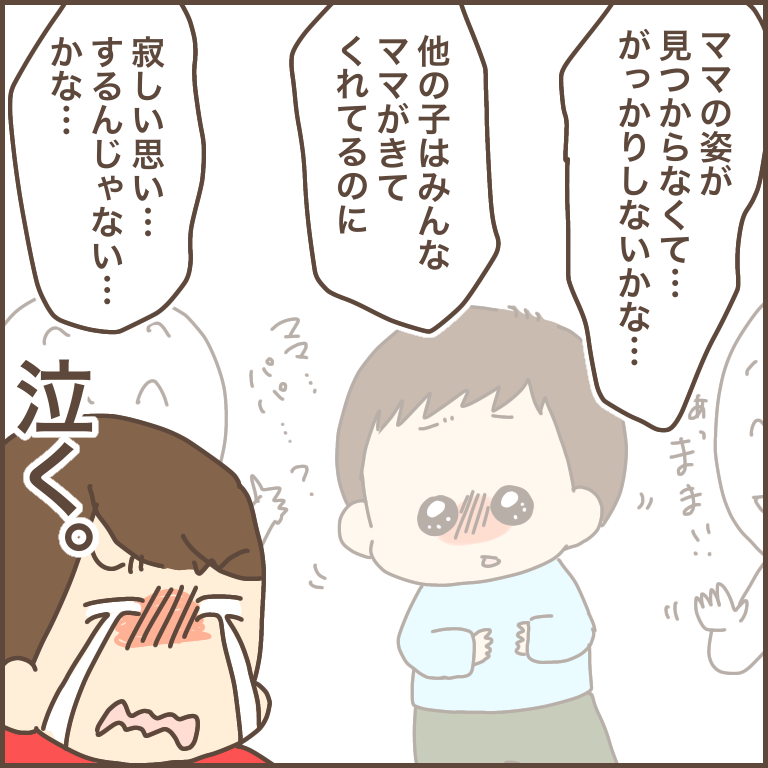 ちなみに...息子が通っている保育園の先生からは「お母さん達の姿が見えてしまうと落ち着かなくなってしまったり、泣いたりなどする場合があるので隠れがち?に見守っていてください」と初めての時に言われましたが、そこはやはり保育園・幼稚園によって違いますよね。