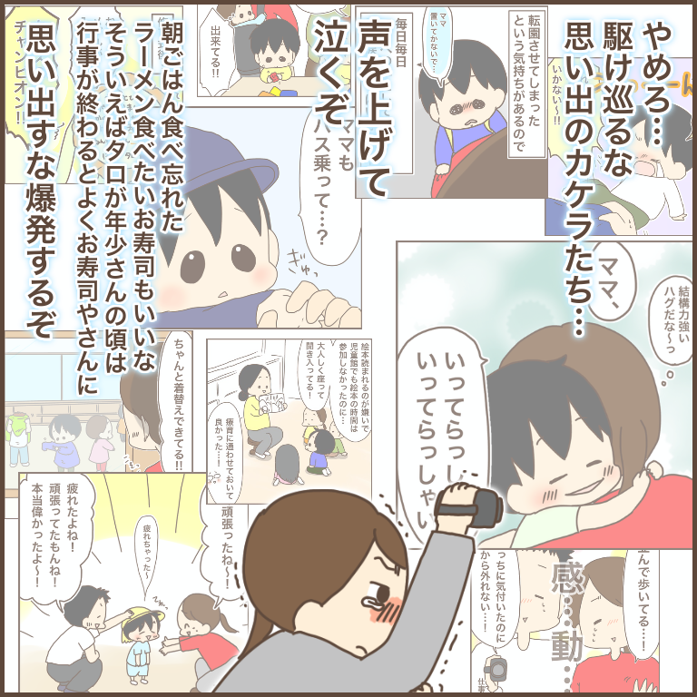 4月から長男が年少さんで幼稚園へ入園します。これからたくさん出来るであろう思い出のかけらたちをタロくんの思い出と重ねてしまい泣いてしまいました。3年間の幼稚園親子共々大切に通いたいと思いました。ありがとうございます。