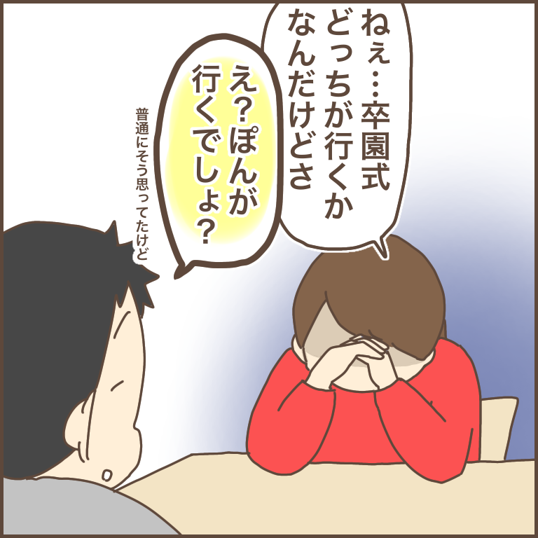 自分の子ども、卒園児じゃないけど保護者会会長の祝辞の為に出席します(・・;)