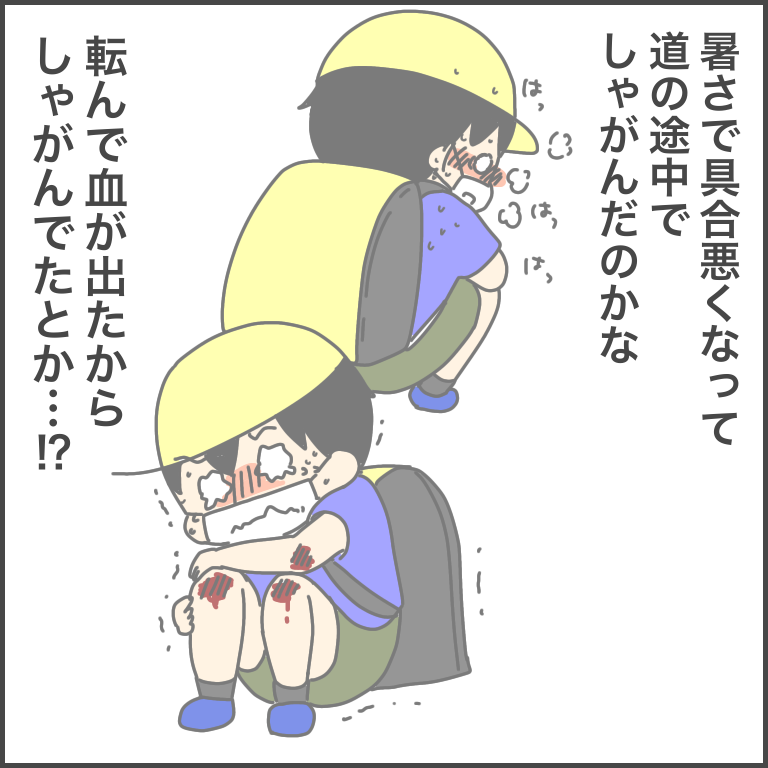 いや、道草食ってただけで無事で何よりだけど、すごく暑い日にマスクもつけっぱなしで、