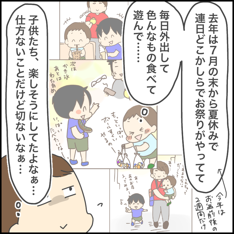 コロナで出来なかったことはたくさんあるけど、コロナだったからできたことってこともあるんだと思います。タロくんジロくんが大人になって「あの時お母さんがお祭りしてくれたよね!」って話せますね!🥰