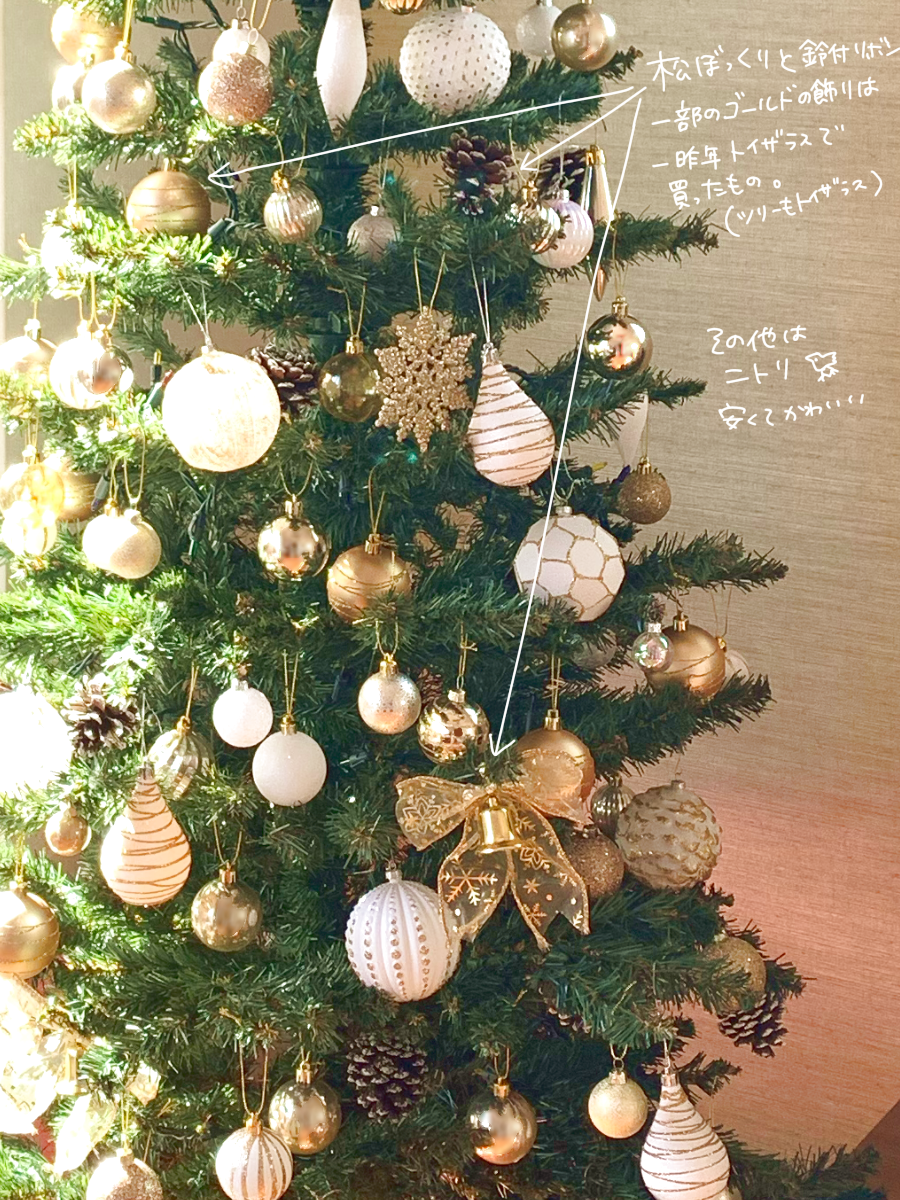 赤×ゴールドという飾り付けから雰囲気を変えたくて今年は白っぽくしました。