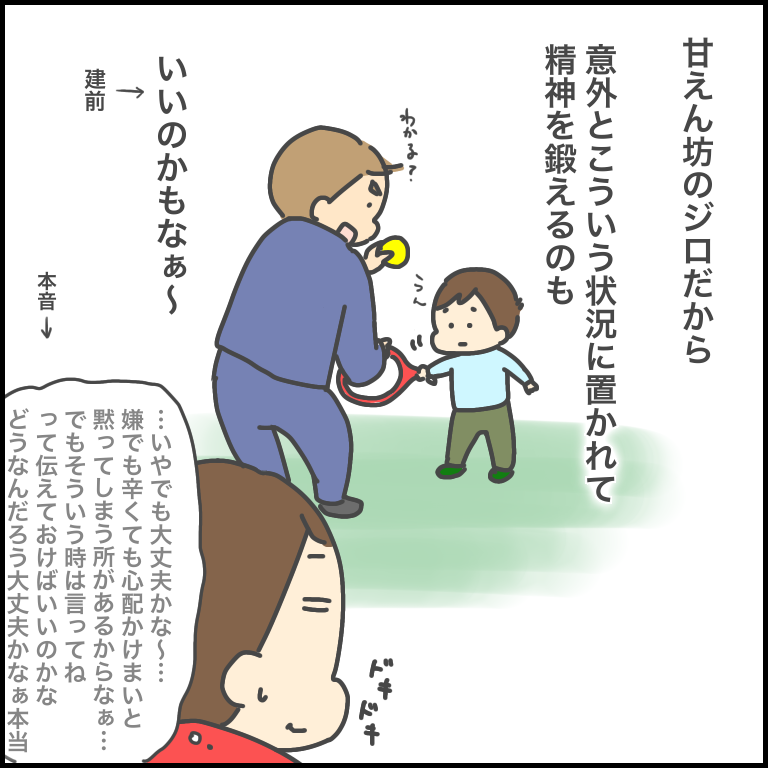 ジロくんがコーチに違うと言われながらも、何度もトライする姿を心配しながらも見守るのも親としては毎回ドキドキですよね、きっと。。