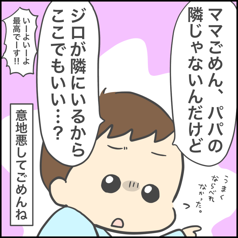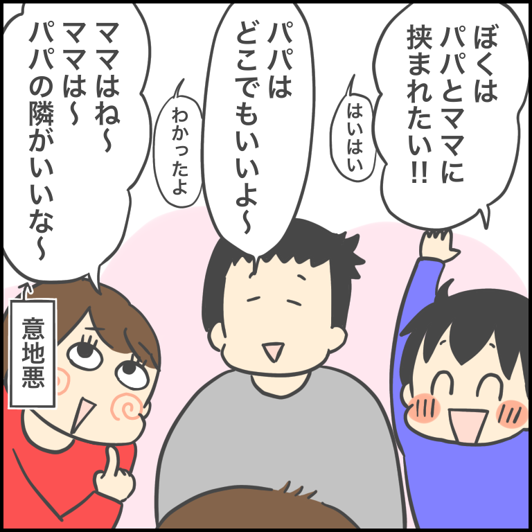 タロがママとパパの間と言っている時点でママがパパの隣に寝れる可能性は0なんだけど、ちょっと意地悪して無茶言ってみました。笑