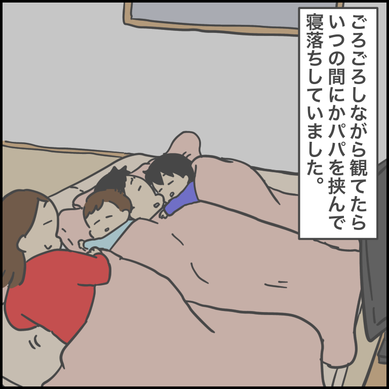 ジロは結局ママとパパに挟まれながら寝ることができました。