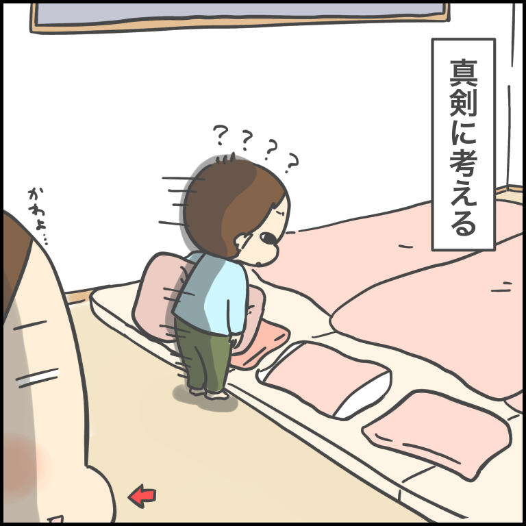 真剣に考えて考えて、何度も枕の位置を変えたりして、一生懸命全員の要望に応えようとしていました。