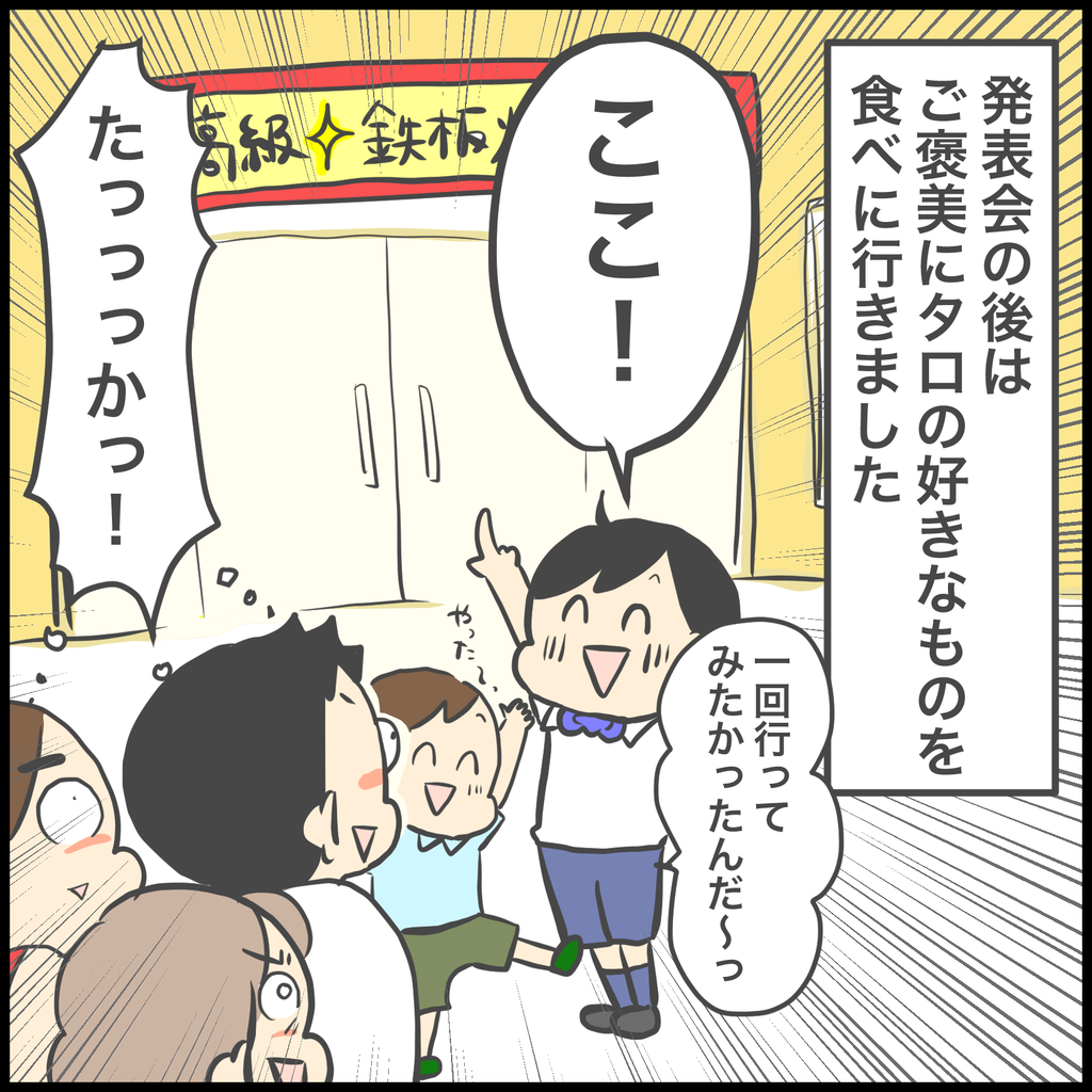 コロナ禍で運動会や発表会などの学校の行事がなくなり、タロが家以外で頑張っている姿を見る機会がなかったので、今回発表会に出られて、タロの成長を見ることができて本当によかったです。