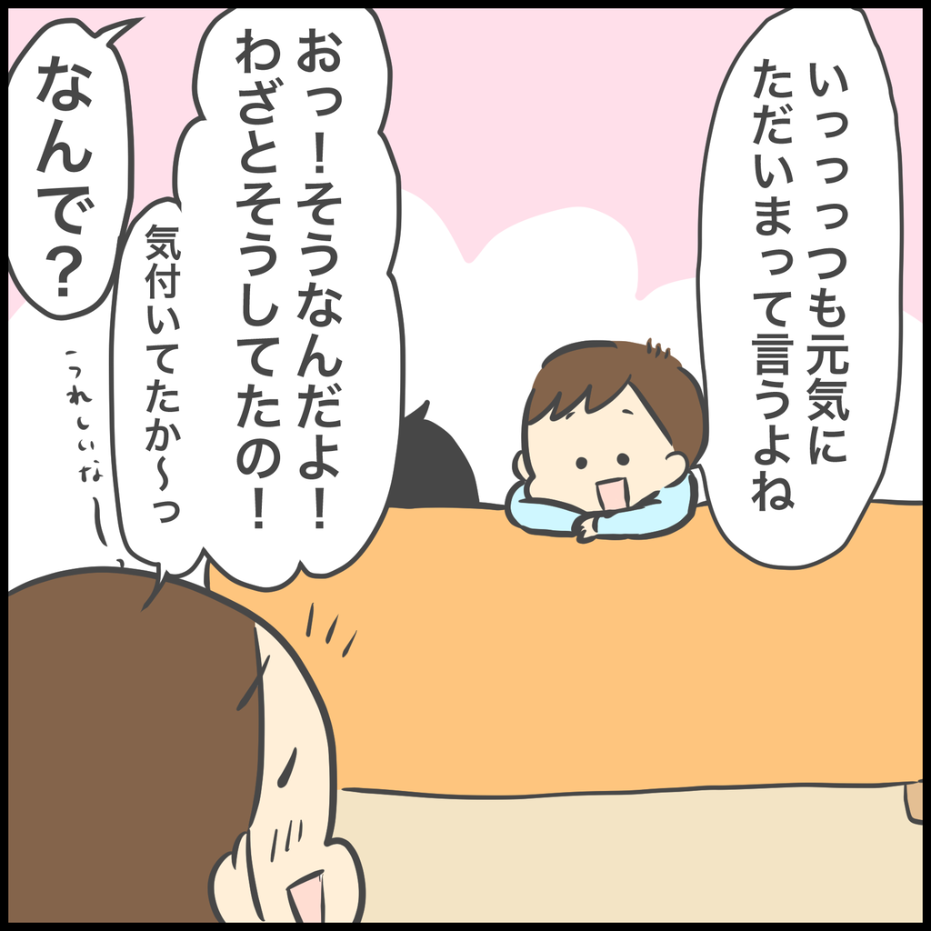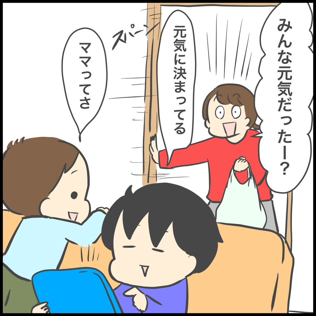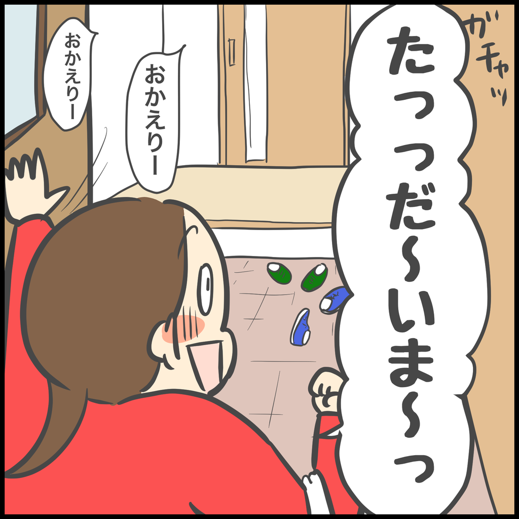 あとは「もう安心しろ〜!ママが帰ったぞ〜!」っていう合図ですね。