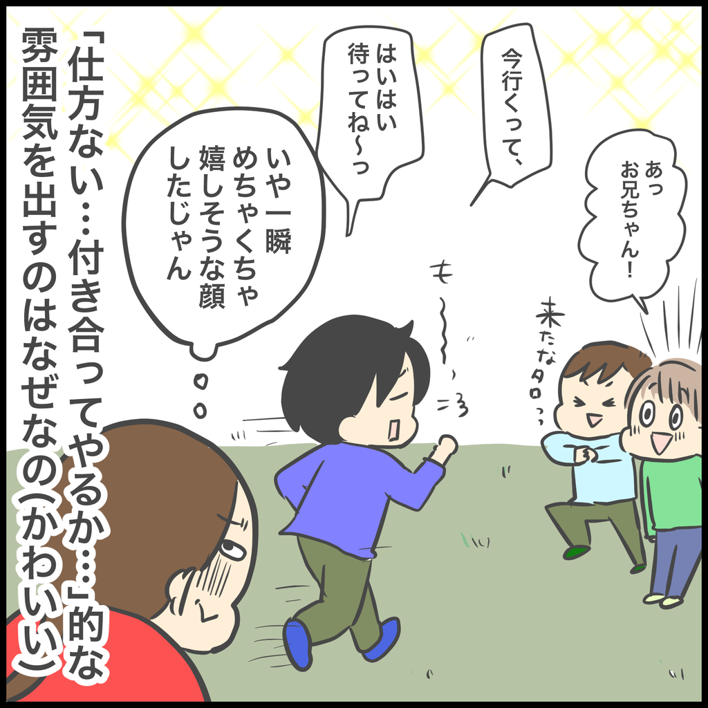 すぐに混ざりにいって三人で遊ぶので何も思ってないと思うけどね。笑