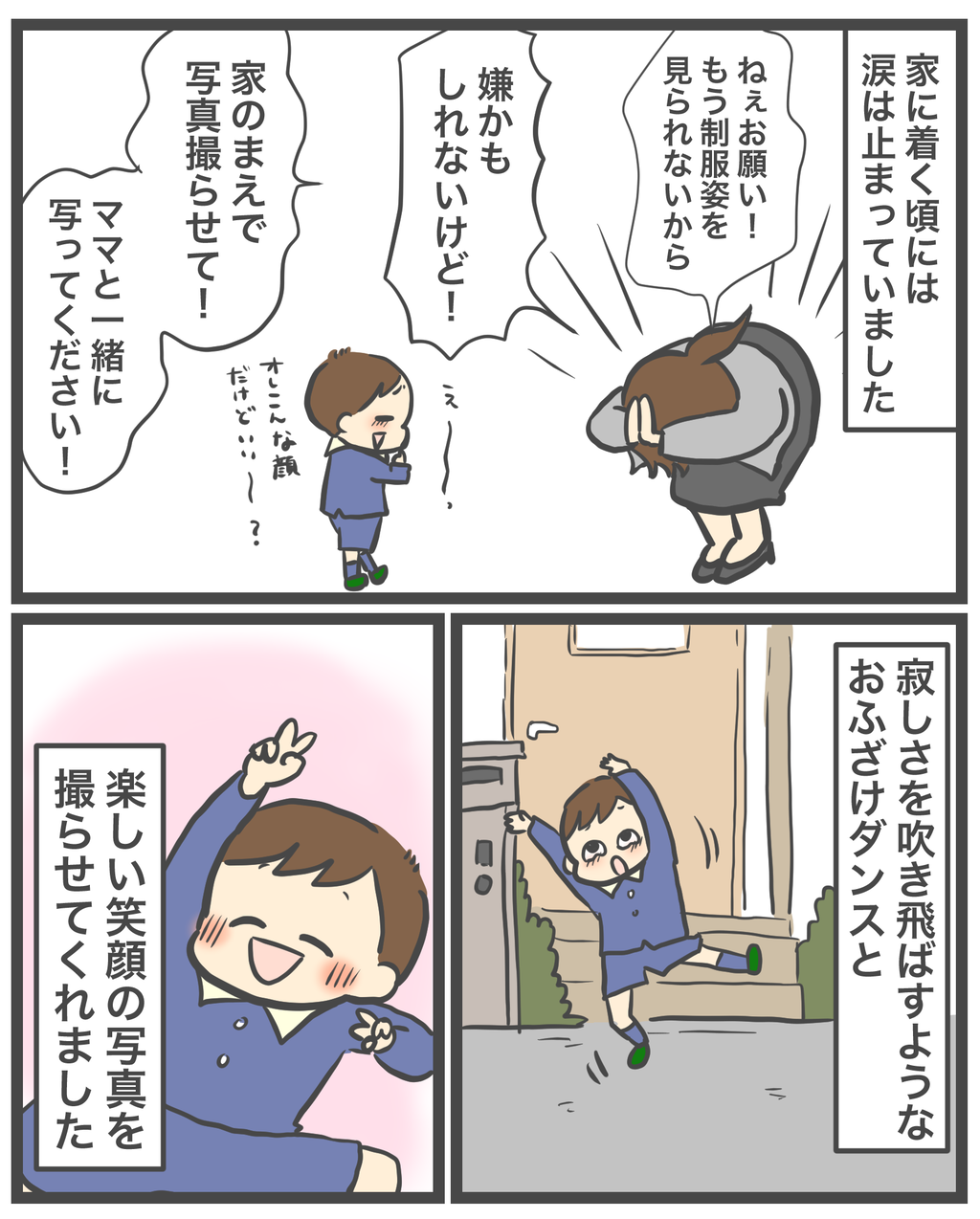 幼稚園の帰り際は悲しくなっちゃったけど、それだけ楽しかったからですもんね。小学校でも楽しい思い出たくさん作ってね!