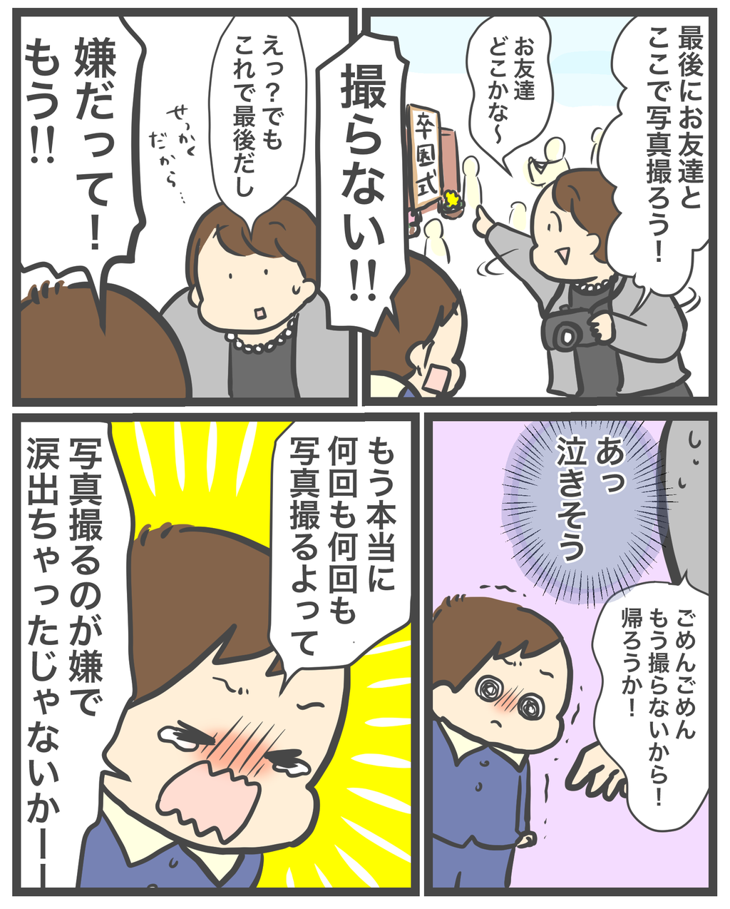 写真撮るの嫌で泣いちゃうって、可愛すぎて泣けてしまいます。