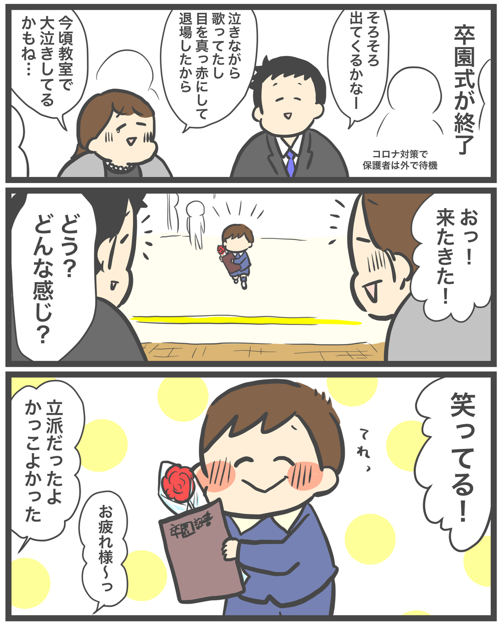我が家は2年前の出来事ですが未だ泣けます😭コロナの対策も手探りでやりはじめたくらいだったので色んな気持ちが入り混じる式でしたね😅