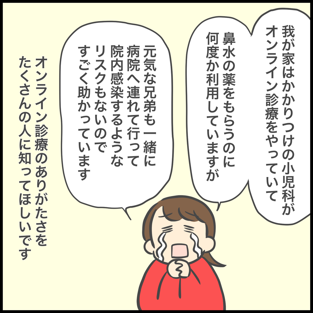 みてねコールドクターなら小児だけでなく大人もオンライン診療を受けられるので、どうしても身動きが取れなくなった際は私も利用したいと思っています。