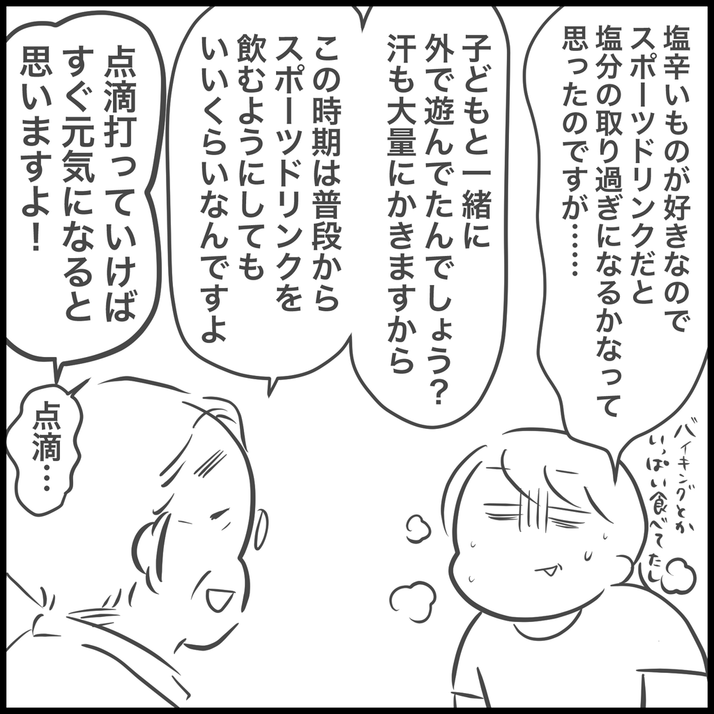 点滴したほうが、直接塩分等が体に入るので回復早いですよ。