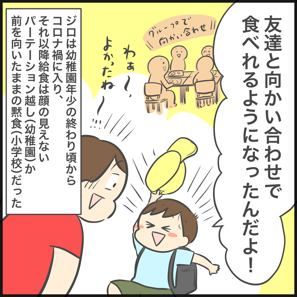 年少さんの頃の記憶が薄れてきているジロにとって、友達と向かいあって給食を食べるというのは初めての経験のようなもの。すごく嬉しそうに話してくれました。