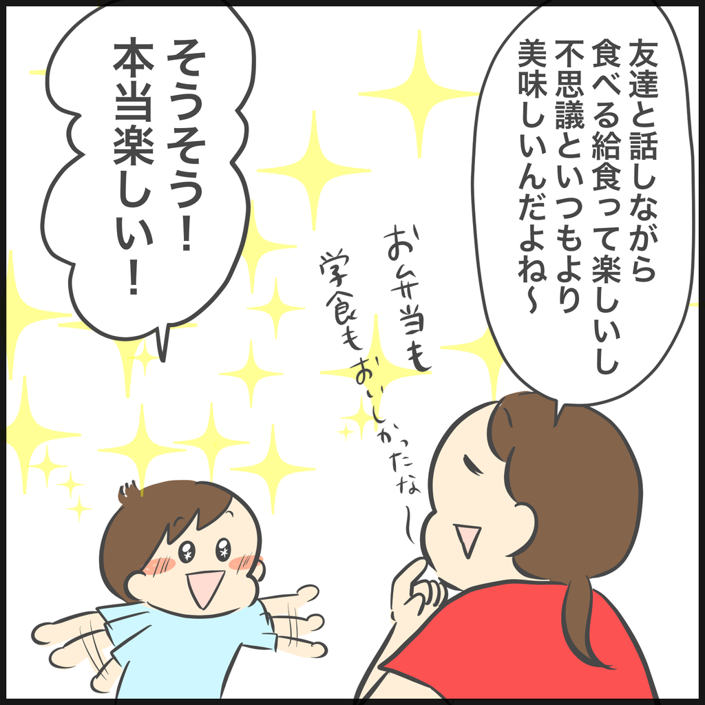友達の顔を見ながら、話をしながら食べる給食はすごく楽しくて、あっという間に食べ終わってしまうんだそうです。
