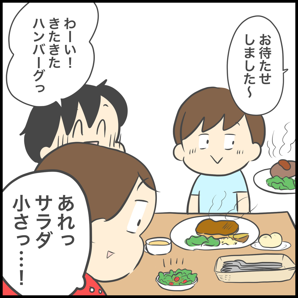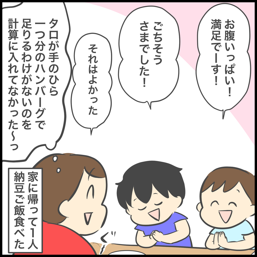 タロは家ではハンバーグ300g以上食べるのでねー。ご飯と野菜と味噌汁も飲んでそれだから足りないよね。そうだった。