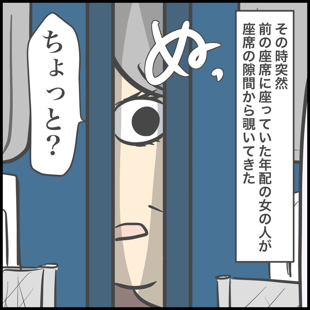 そんなことを考えていたら前の座席の隙間から覗いてきた人が…笑