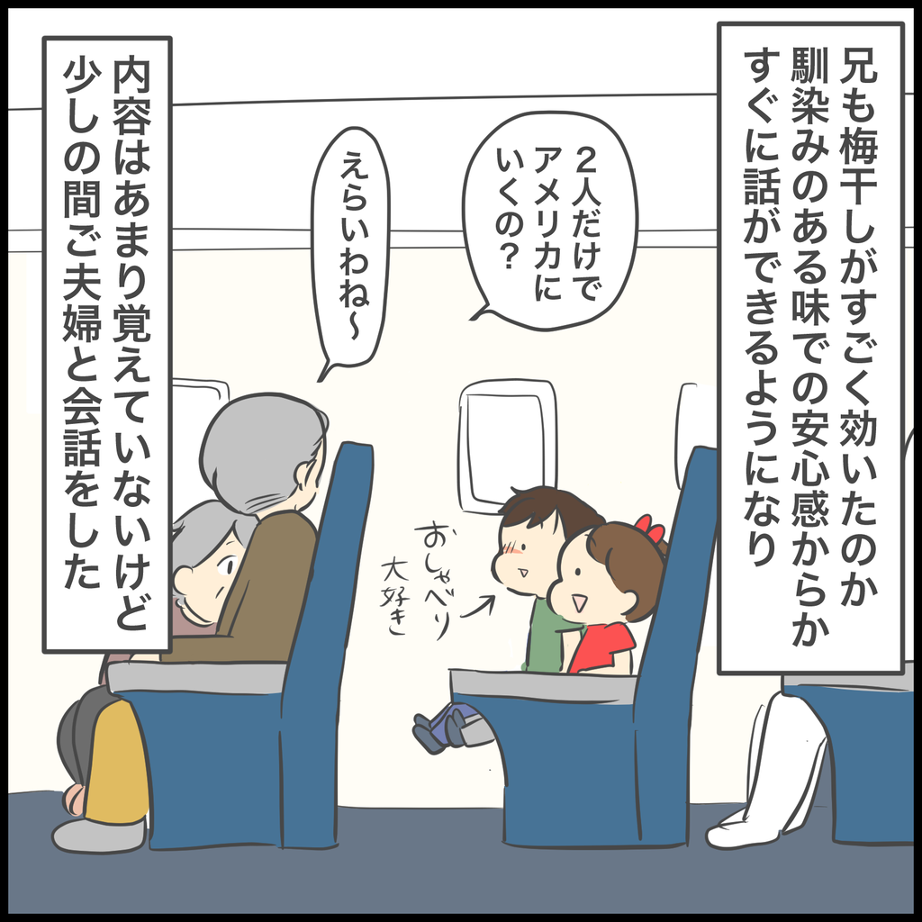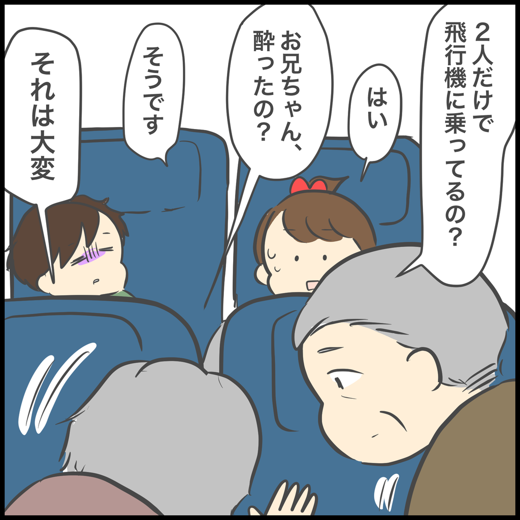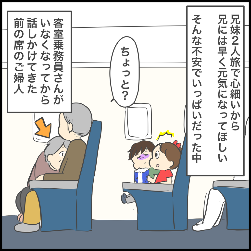 前の座席のご夫婦のおかげですぐに回復できた兄。