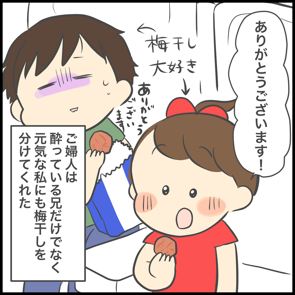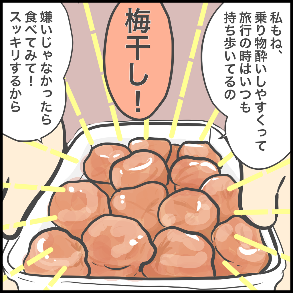 あまりの効き目に梅干しってすごい!!と驚いたのですが、あれは子供2人で心細かった中、助けてくれる大人がいるんだという安心感も効き目にプラスされたんじゃないかなと思っています。