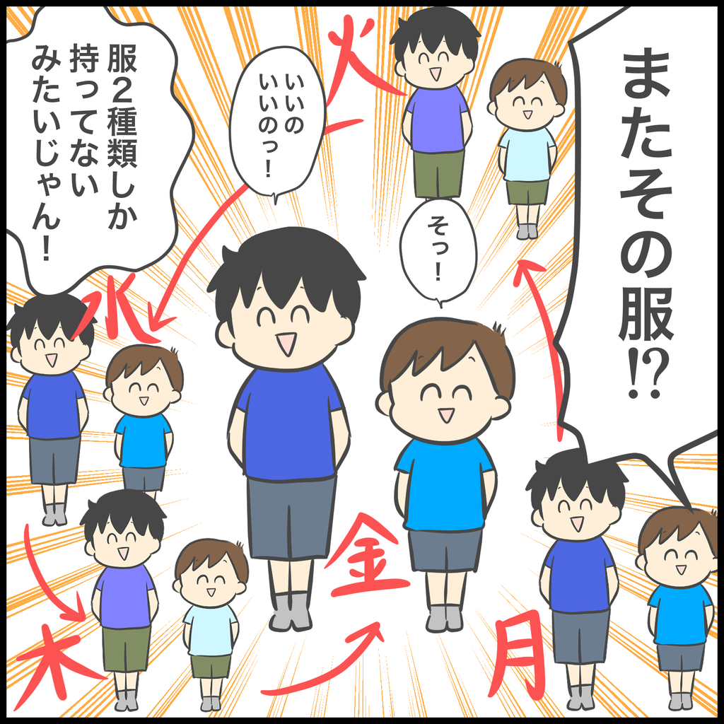 うちも乾燥機から出した服を着せてるので子供たちの服装は2日に一度は同じです。