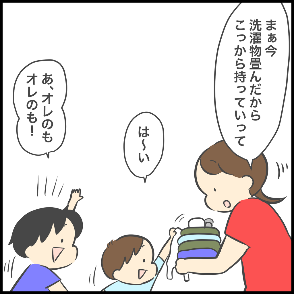 (私自身が面倒だったんだよね!私がやった方が早いしせっかく畳んで棚にしまった服をぐちゃぐちゃにひっくり返されちゃうのがいやで!ごめん!)