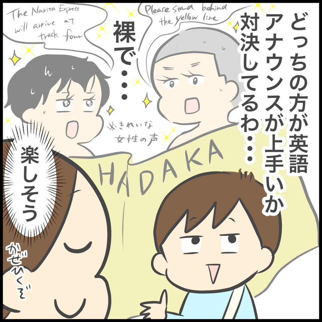 英語アナウンスは勝ったけど、車掌さんのモノマネは完全負けたわ…ってさ。笑