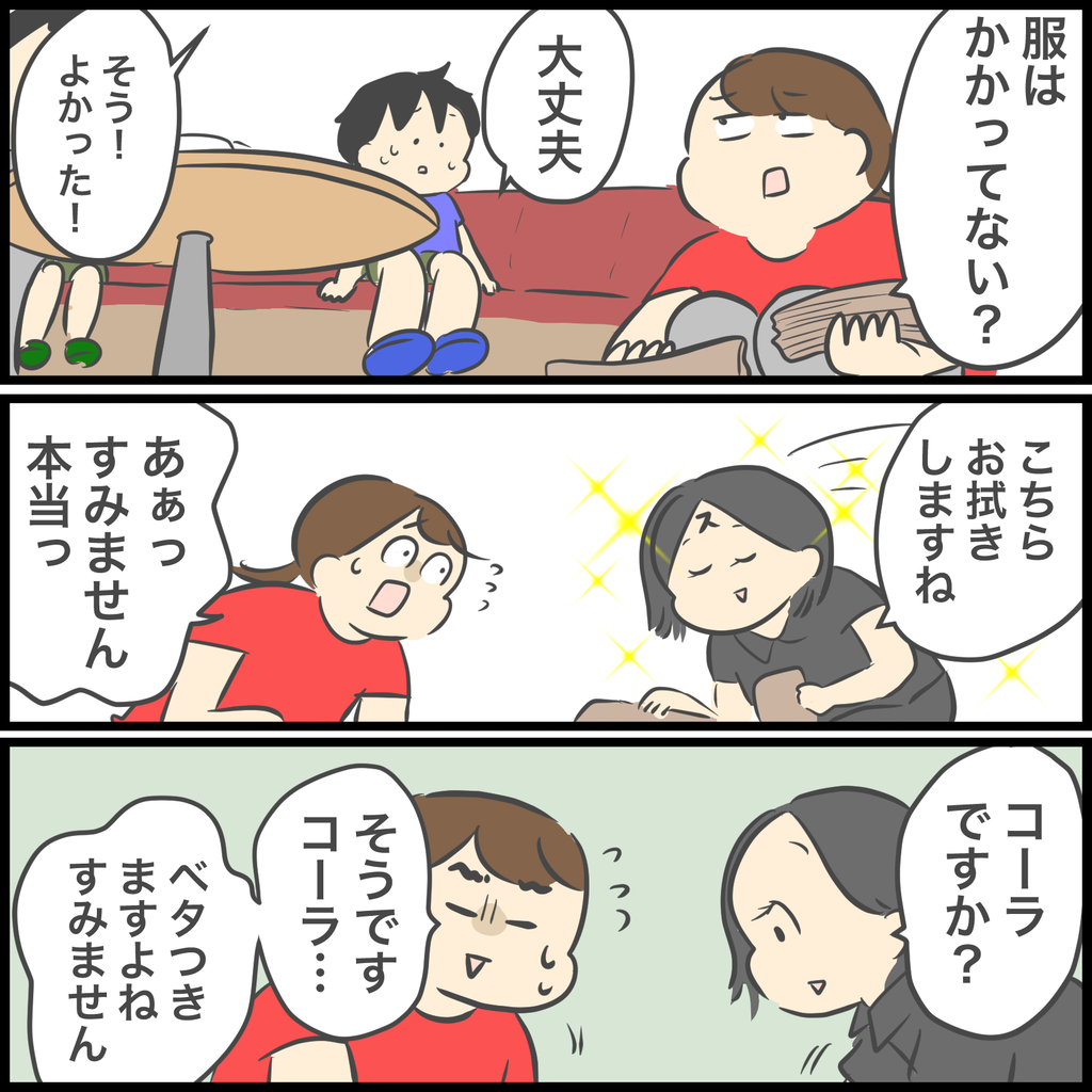次はこぼさないように気をつけてねって言いながら食事を続けようとしたら、一緒に掃除をしてくれた店員さんが新しくコーラを持ってきてくれました…!感動。