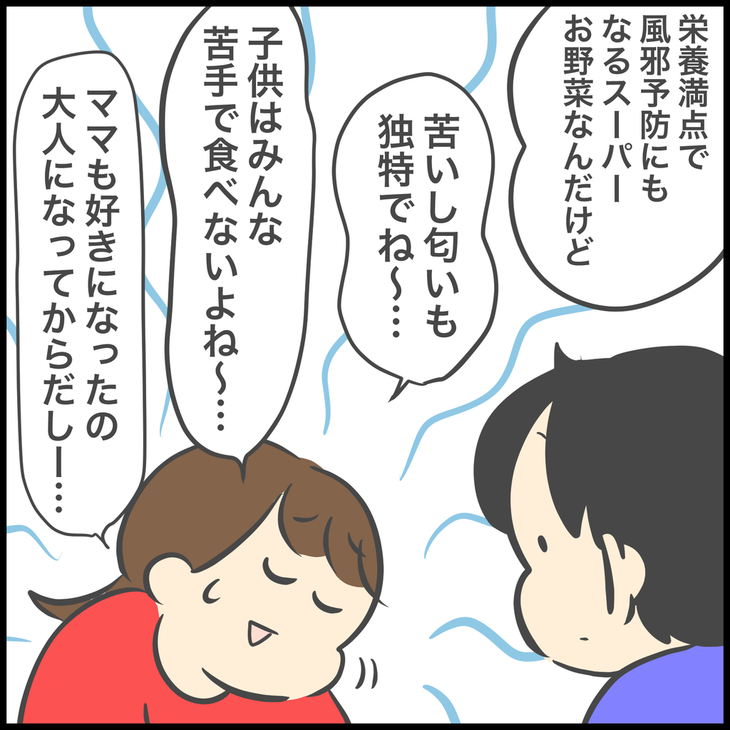 ピーマンにゴーヤも進んで食べようとするから苦味には強いのかな?