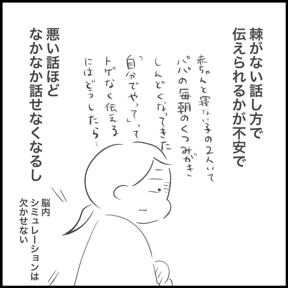 私も言いたい事伝えようと頑張った結果「なんでそんな嫌味なん」と夫に言われます。