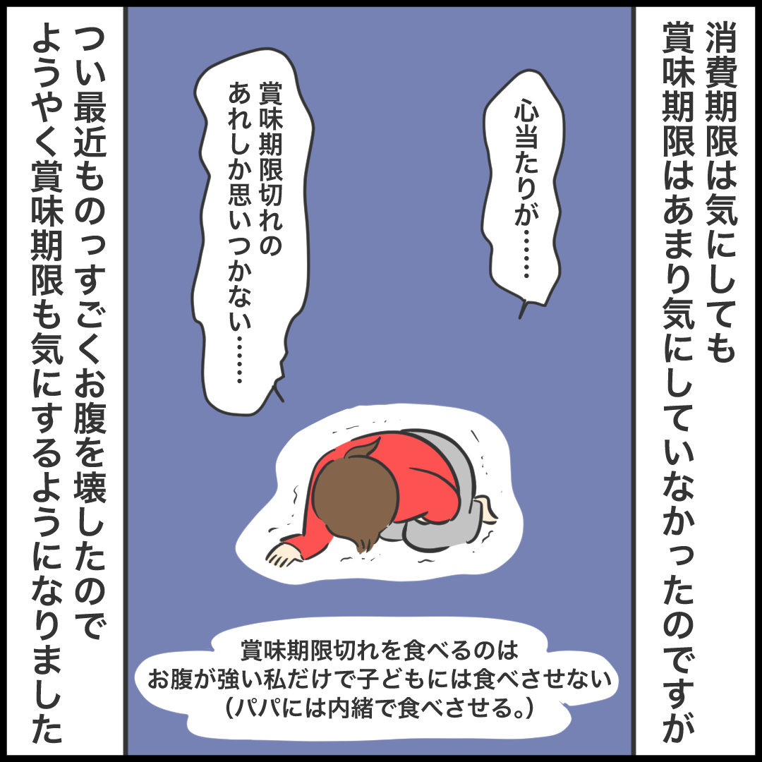 作り置きのおかずとかも古いのは私だけにして子供達には新しく作ったものを食べさせます!たとえ古いおかずの方が子供達が好きでも「古いから君たちはダメだよ〜」と(^^;)