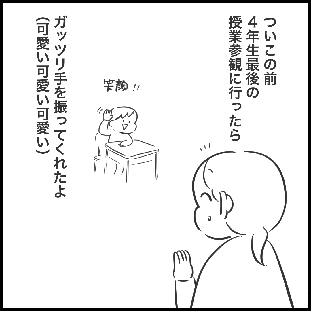 それが最後の最後、4年生ラスト参観日で教室に入った途端めちゃくちゃ笑顔で手を振ってくれてね。